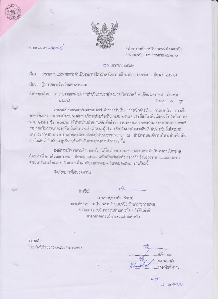 หัวข้อ :: รายงานแสดงผลการดำเนินงานราย(ไตรมาสที่ 2 เดือน มกราคม-มีนาคม 2562)