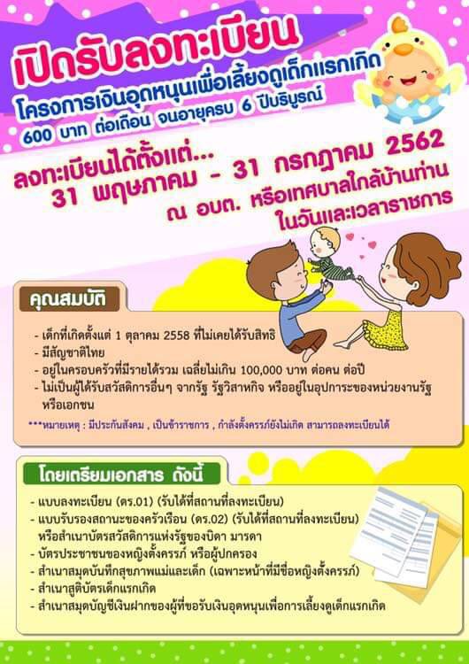 หัวข้อ :: โครงการขอรับเงินอุดหนุนเพื่อเลี้ยงดูเด็กแรกเกิด ลงทะเบียน ตั้งแต่วันที่ 31 พฤษภาคม - 31 กรกฎาคม 2561