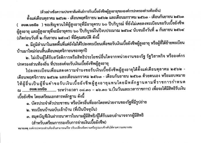 ประชาสัมพันธ์การรับเบี้ยยังชีพผู้สูงอายุ ปี 2563