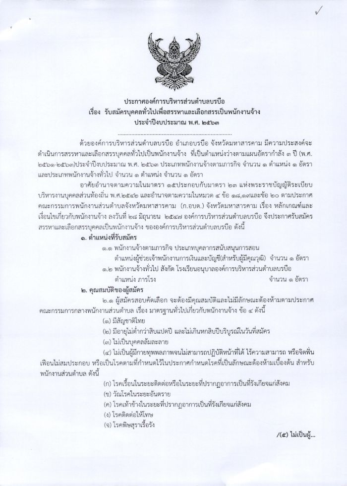 รับสมัครบุคคลทั่วไปเพื่อสรรหาและเลือกสรรเป็นพนักงานจ้าง ประจำปีงบประมาณ 2563