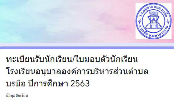 รับสมัครนักเรียนโรงเรียนอนุบาล อบต.บรบือ ออนไลน์