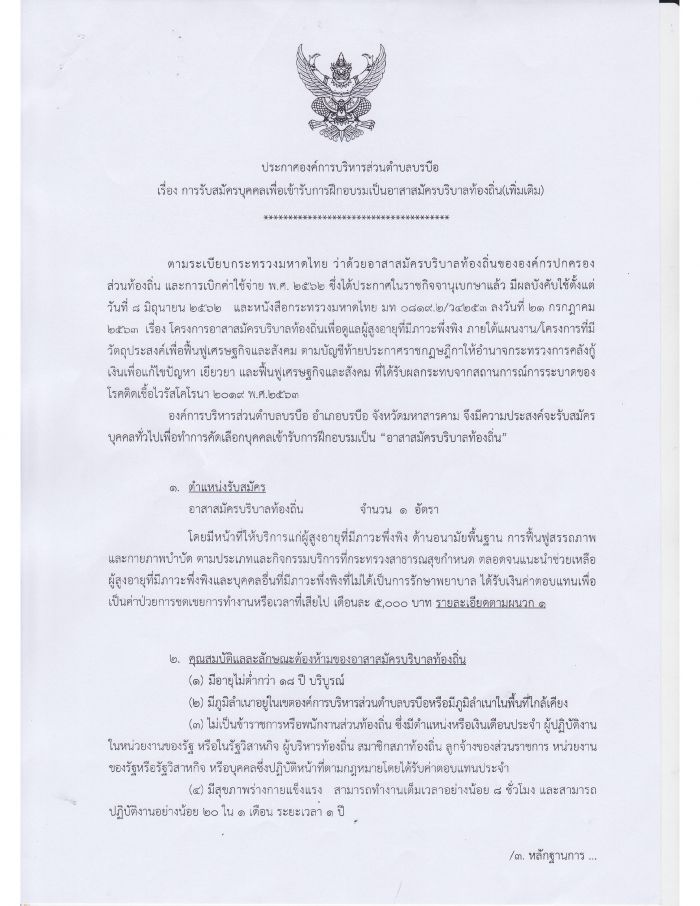 หัวข้อ :: การรับสมัครบุคคลเพื่อเข้ารับการฝึกอบรมเป็นอาสาสมัครบริบาลท้องถิ่น(เพิ่มเติม)