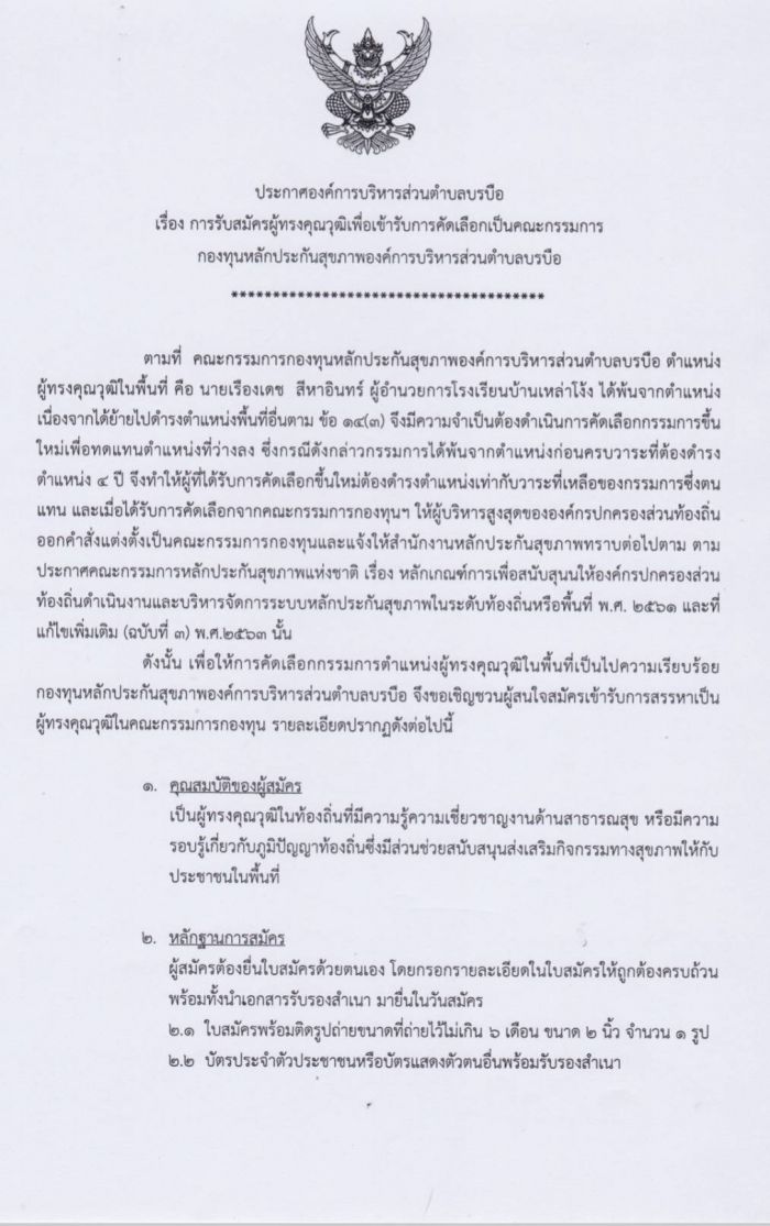 หัวข้อ :: รับสมัครผู้ทรงคุณวุฒิเพื่อเข้ารับการคัดเลือกเป็นคณะกรรมการกองทุนหลักประกันสุขภาพองค์การบริหารส่วนตำบลบรบือ