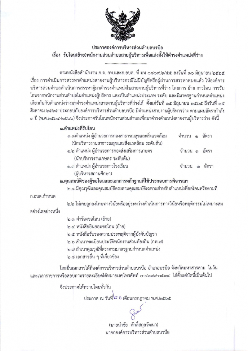 รับโอน(ย้าย)พนักงานส่วนตำบลสายผู้บริหาร