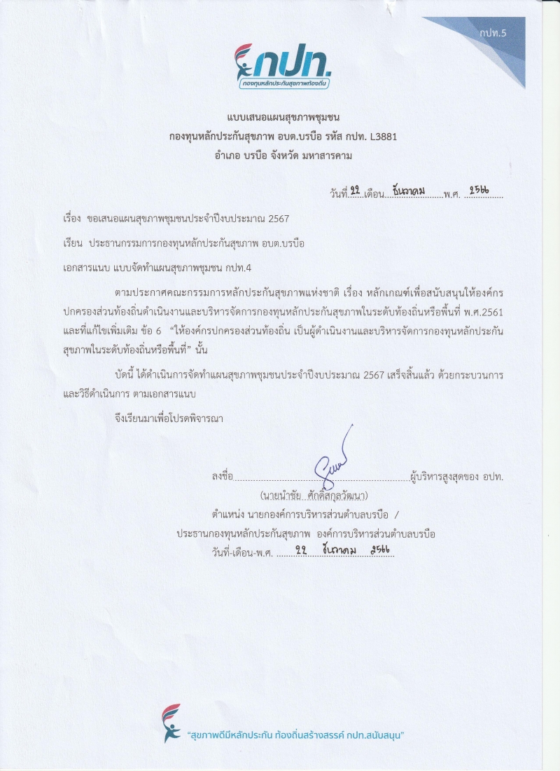 ขอเสนอแผนสุขภาพชุมชน ประจำปีงบ 2567 รหัส กปท. L3881